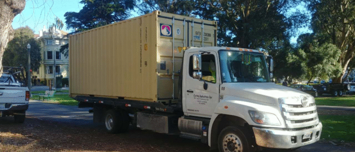 We’re happy to load your truck at the depot if you have the proper equipment to safely transport a shipping container (if you don’t have a truck capable of safely hauling a container, we can help you with delivery).