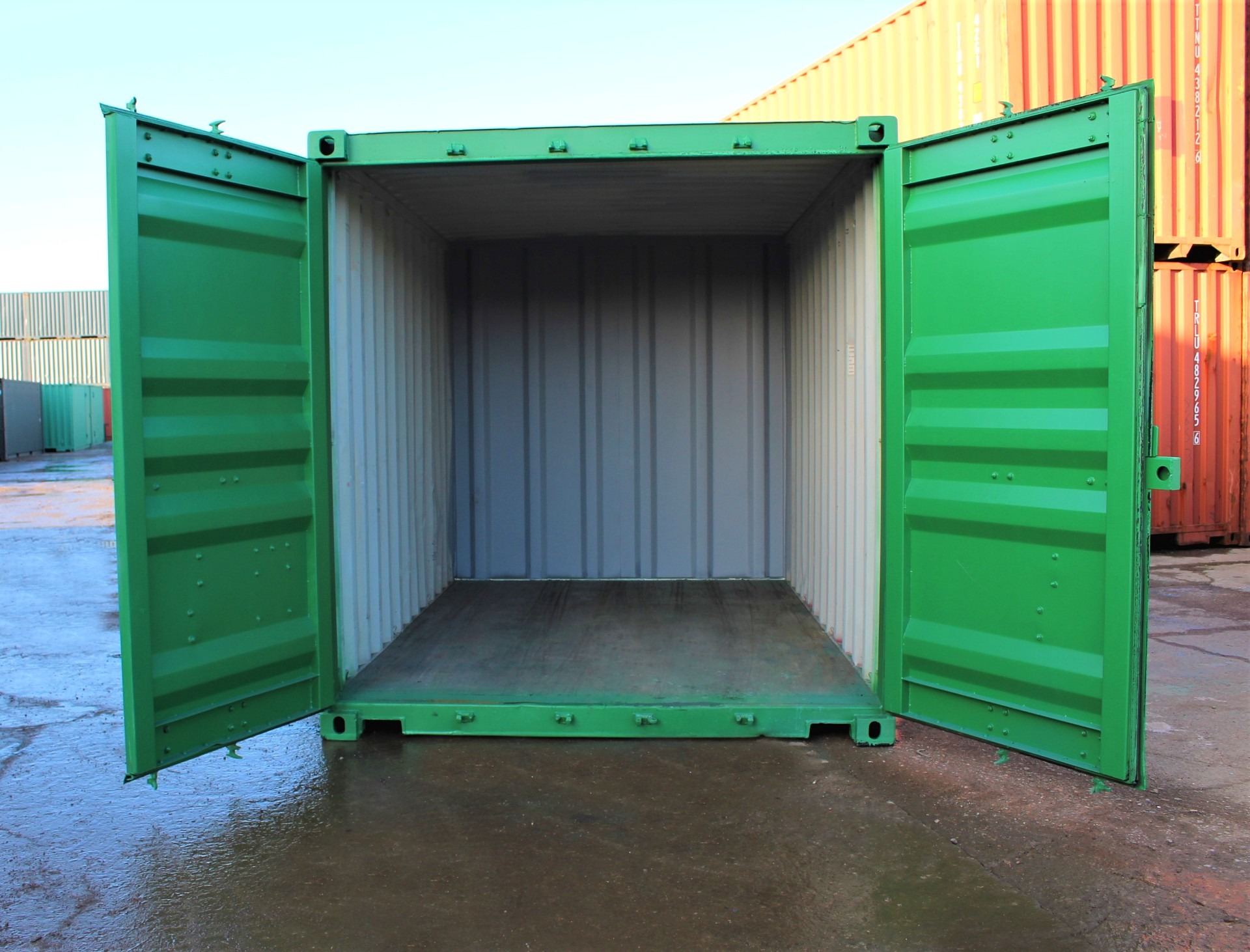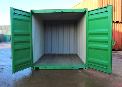 • 12ft used shipping containers are the favoured choice for storage. The price includes our S2 style doors. The S2 door provides excellent security and guards against all forms of water ingress without the need for extra modification as they come pre-fitted with external seals and a lockbox. Repainting in a standard RAL colour of choice and lockbox is also included.