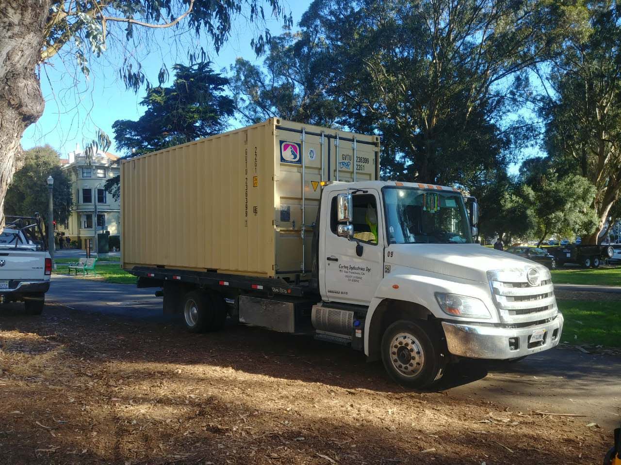 Our third-party carriers deliver your container on a tilt-bed trailer so you don’t need any additional equipment (e.g. a crane) to offload it onto your property.